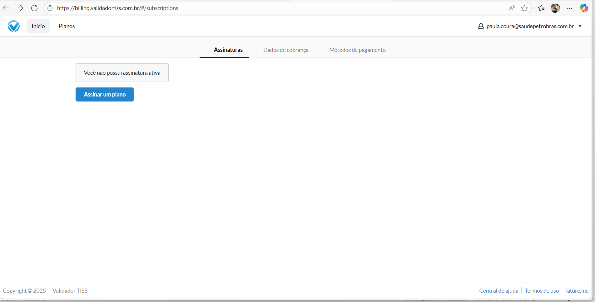 Correto, não há nenhuma assinatura em nosso banco de dados com o e-mail indicado no print.