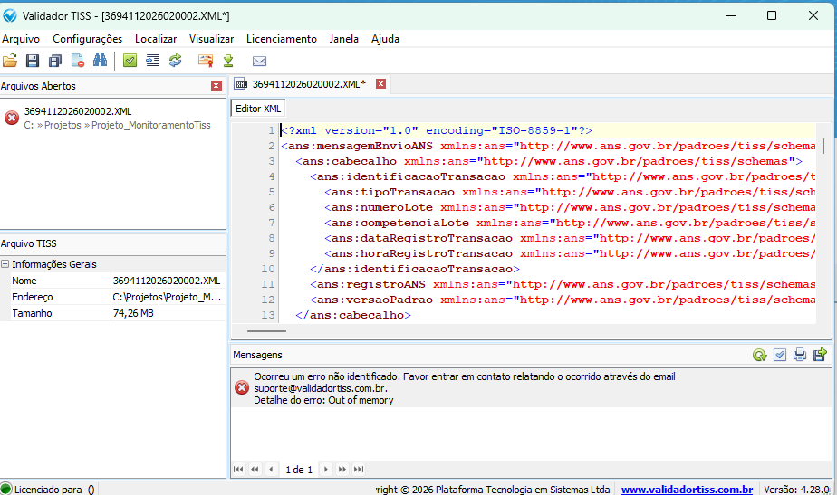 Se você precisar validar arquivos maiores, recomendamos utilizar a versão Desktop: